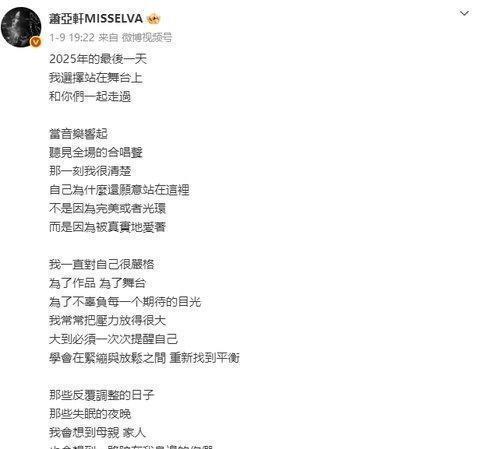 萧亚轩近况曝光,舞台状态回春,网友感叹情路坎坷